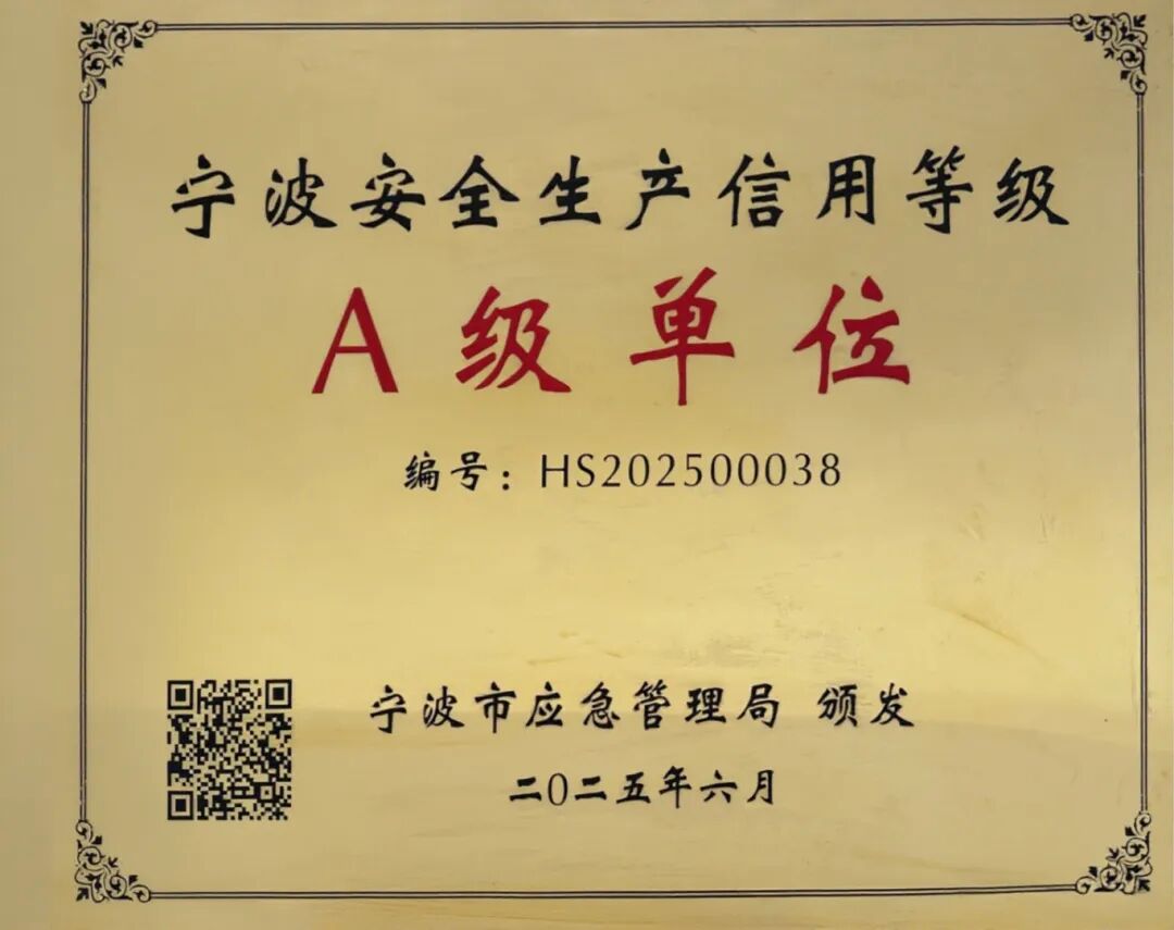 成功斬獲“寧波市安全生產(chǎn)信用等級A級”榮譽(yù),這是寧波市對市場主體安全生產(chǎn)綜合能力的最高級別認(rèn)可。